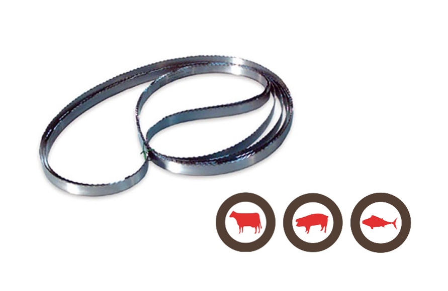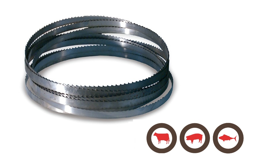 Cintas de sierra fabricadas con aceros de alta calidad para garantizar los mejores resultados y rendimiento en el corte para todo tipo de canales y en todo tipo de carnes y huesos, pescados frescos, congelados y ultracongelados a -40ºC/-60ºC.